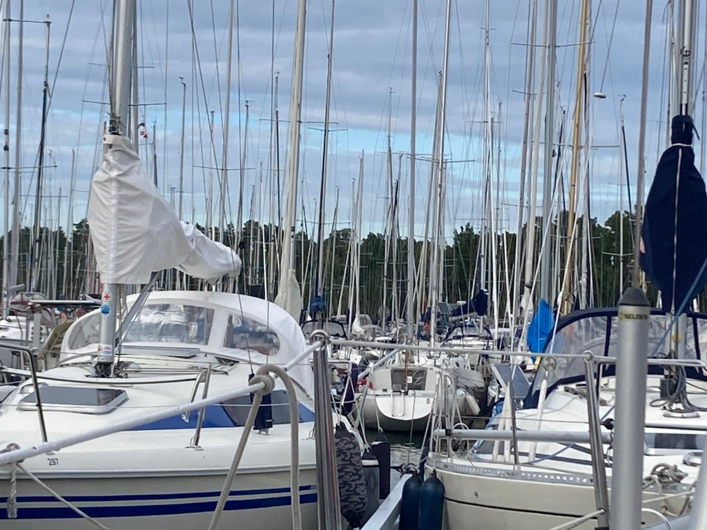 Fortsatte sedan till Bullandö. Mejlade hamnkapten och frågade efter en plats med bommar. Fick svar på 5 minuter att vi tilldelats plats J49. Perfekt!