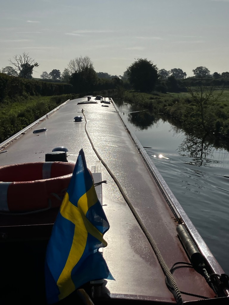 Torsdagen var den sista dagen vi färdades på Llangollen kanal. På fredagen ska vi åka de sista 200 metrarna, öppna en bro och fickparkera i den mycket trånga hamnbassängen. Torsdagen blev den varmaste dagen med temperatur på 25 grader, strålande sol och svag vind.