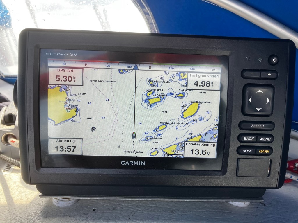 Man kan ”designa” vilka uppgifter man vill se på ”sjökortsbilden”. Har man motorbåt kan man lägga ut motordata på bilden. Vi som har segelbåt väljer istället att lägga ut kryssvinklarna, utöver fart.