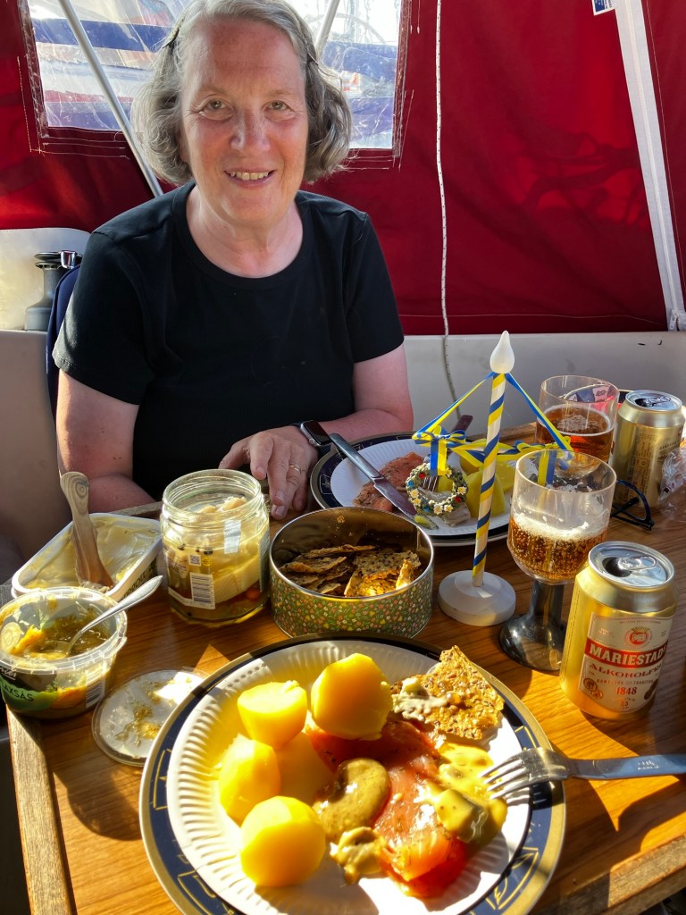 Vi drog oss tillbaka till vår egen kuppe för att äta midsommarmaten. Vi lämnade Hanö kl 5