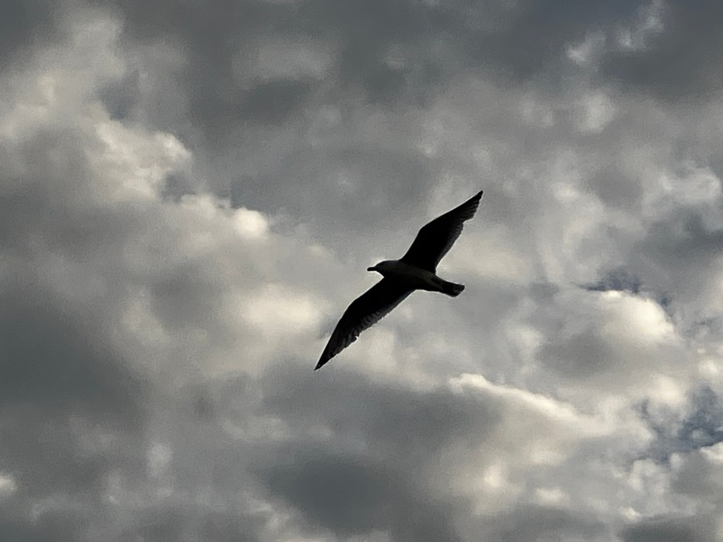 En glad mås följde med oss ett tag, i hopp om att få en brödbit som belöning.