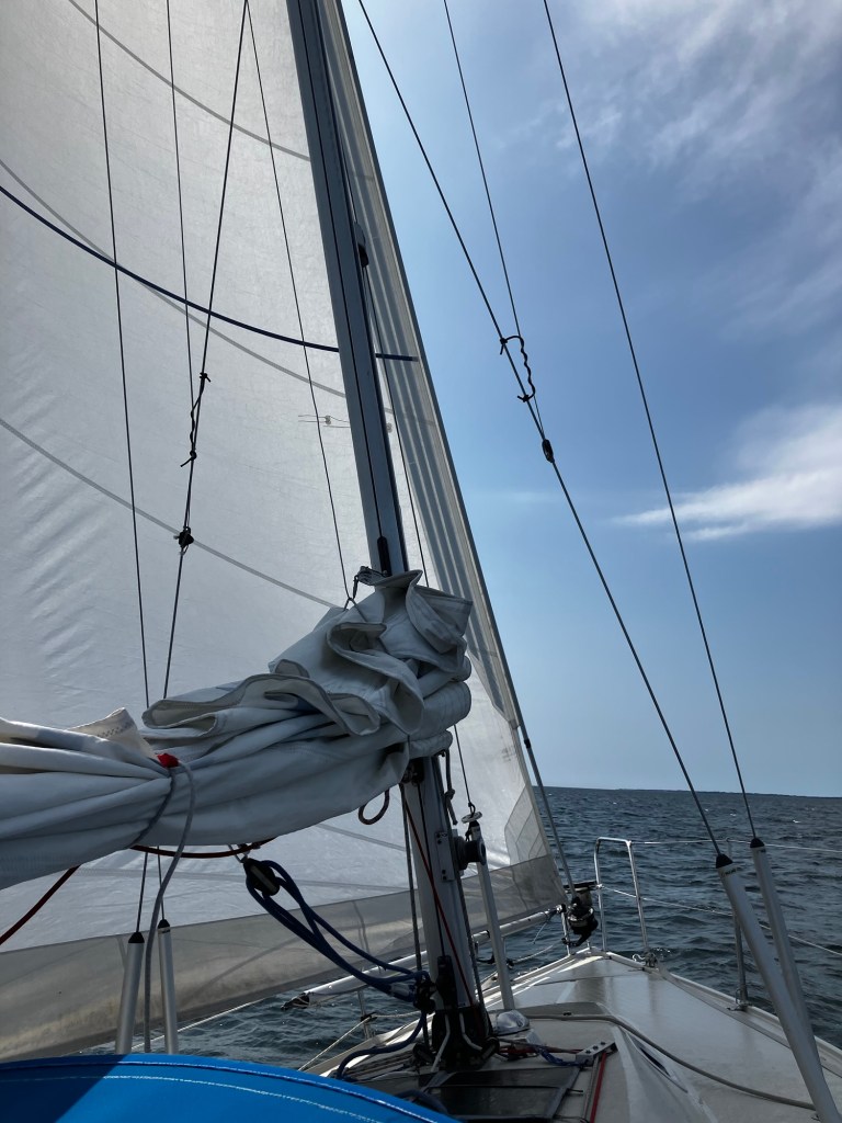 I den friska vinden på Hanöbukten seglade vi med bara genuan uppe ett par timmar.