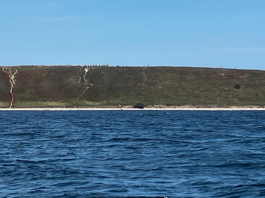 Båtens instrument visade 8,5 grader i vattnet. Det stämde exakt med vad badgästerna hade noterat kl 7 på morgonen. Vi avstod bad denna dag. Men det var en hel del badgäster som kom i sina badrockar och tog sig ett kallbad!