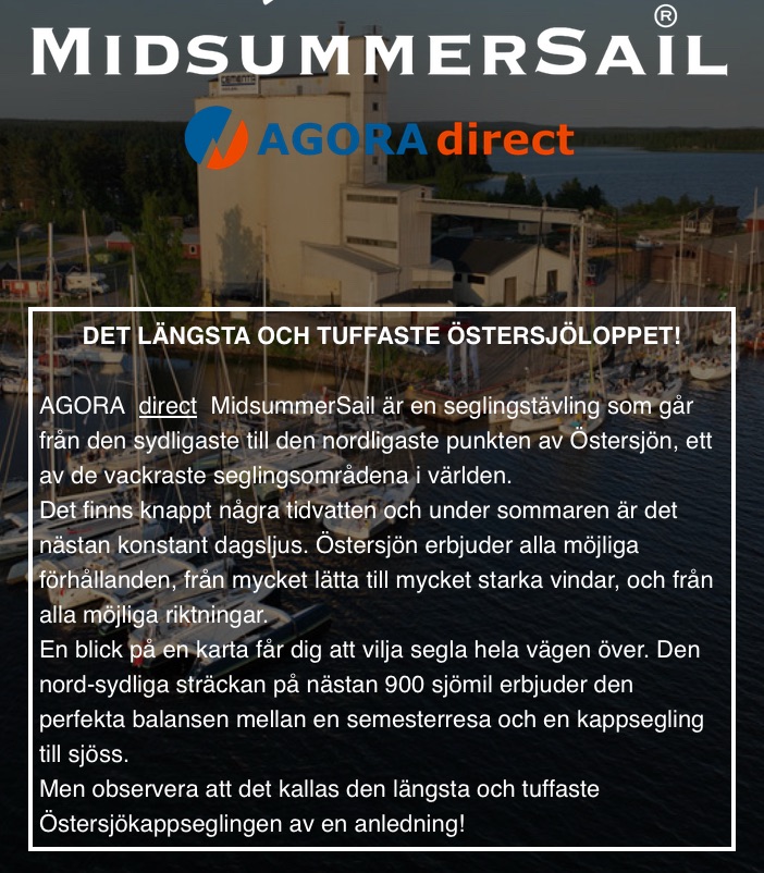 Under kvällen kom det in flera segelbåtar med en stor flagga med nummer på. Det visade sig vara några av de 100 deltagarna i den kappsegling på 900 sjömil som startat i Wismar med målgång i Östersjön nordligaste punkt, Töre. Det ingår i reglerna att deltagarna får ta paus i kappseglingen och ta hamn. De som kom in i kväll hade alltså startat 21 juni kl 13:00. Nu är det den 22:a kl 22:00, och de har seglat ca 130 sjömil.