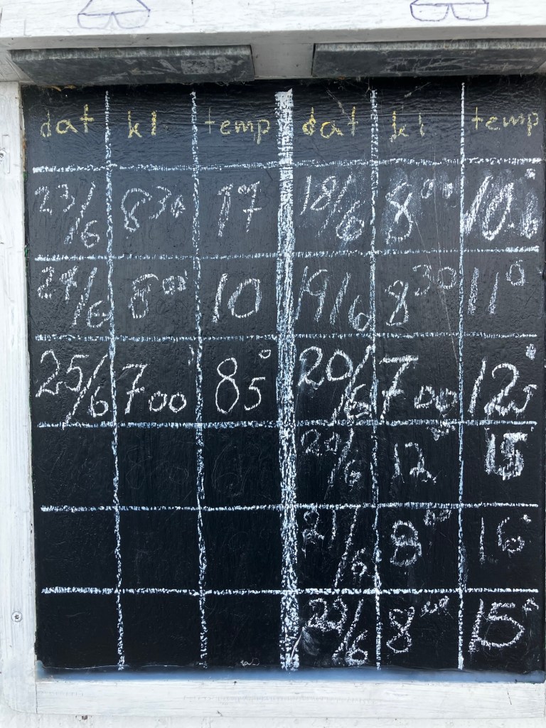 Badgästernas loggbok över badtemperaturer i Skillinge.