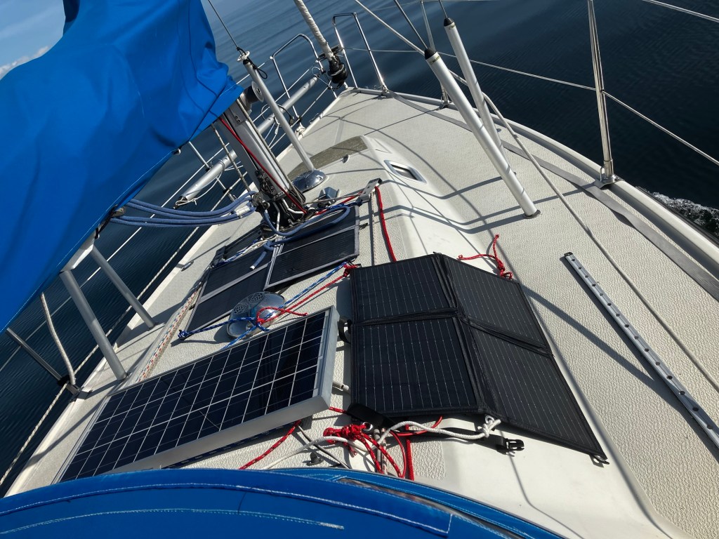 Den extra 50W-solpanelen lades upp på däck och vips hoppade laddningen upp för kylskåpsbatteriet.