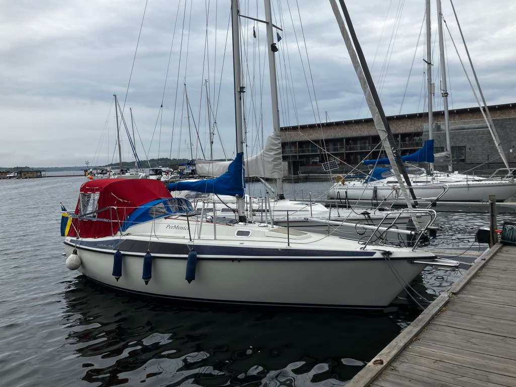 Det är glest med båtar ute i skärgården. Kan ju delvis bero på det kalla och blåsiga vädret. De båtar vi möter är oftast från Tyskland eller Holland.