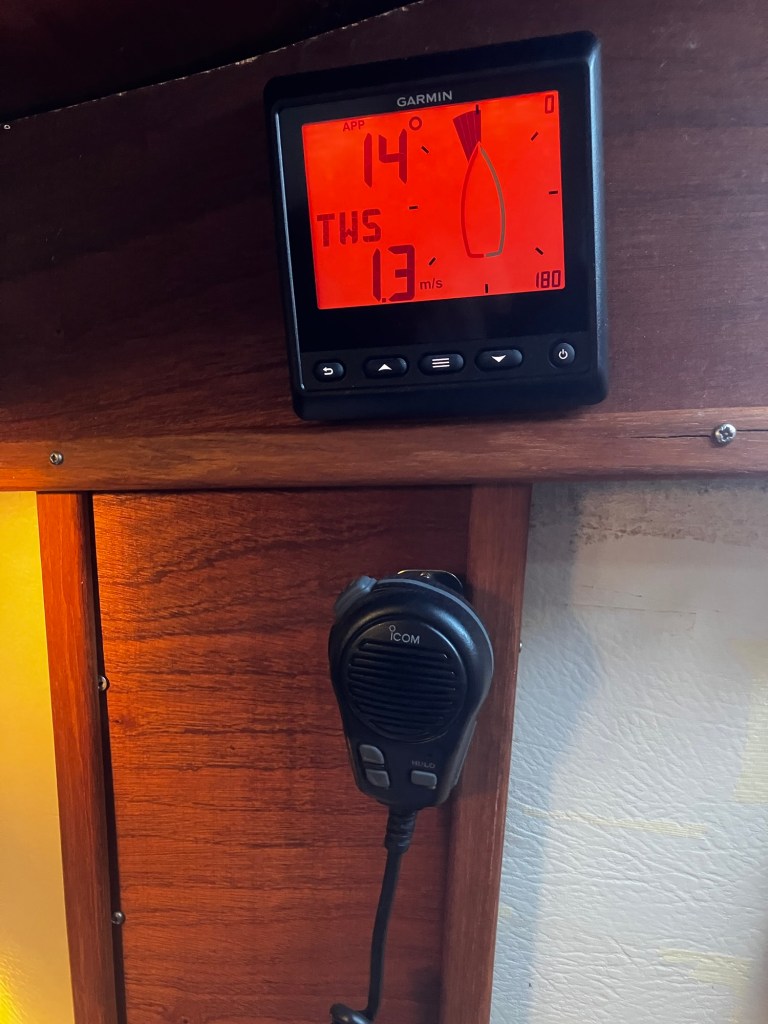 Tack vare att jag har en så liten båt (kort mast) kan jag använda ”wireless” varianten för vindgivaren. Data om vindhastighet och vindvinkel överförs via bluetooth till vindinstrumentet.
