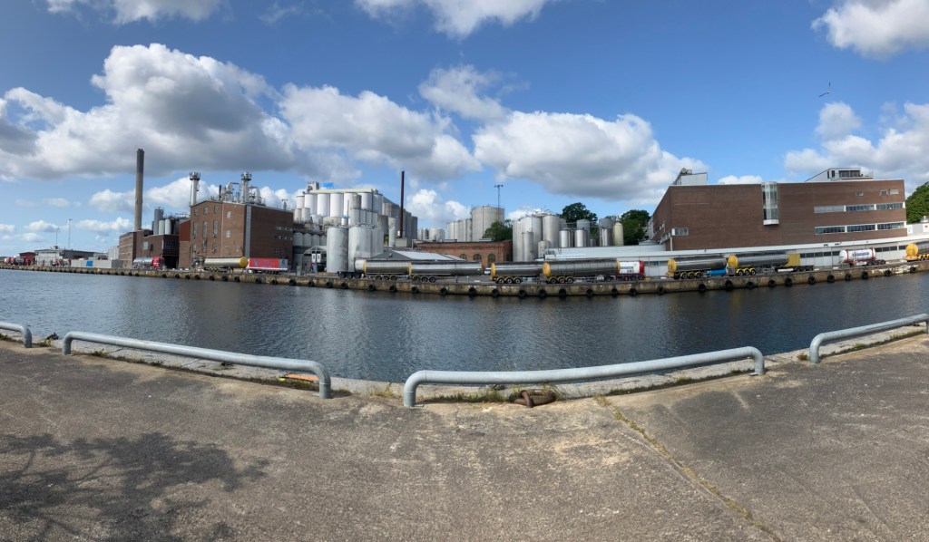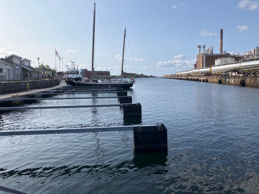 AAK-fabriken (margarin t.ex) ligger på andra sidan Mieån, där gästhamnen finns