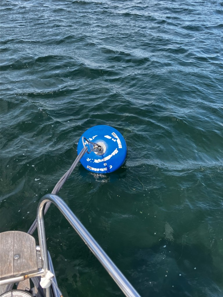 Målet för dagen var en SXK-boj vid Saltärna. Det var skönt att slippa sjögången och att få någorlunda vindlä efter flera timmars motorgång.
