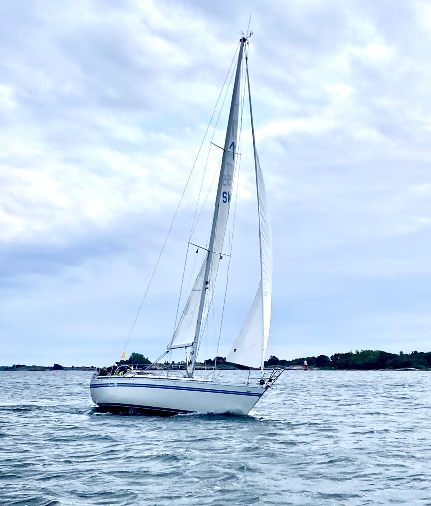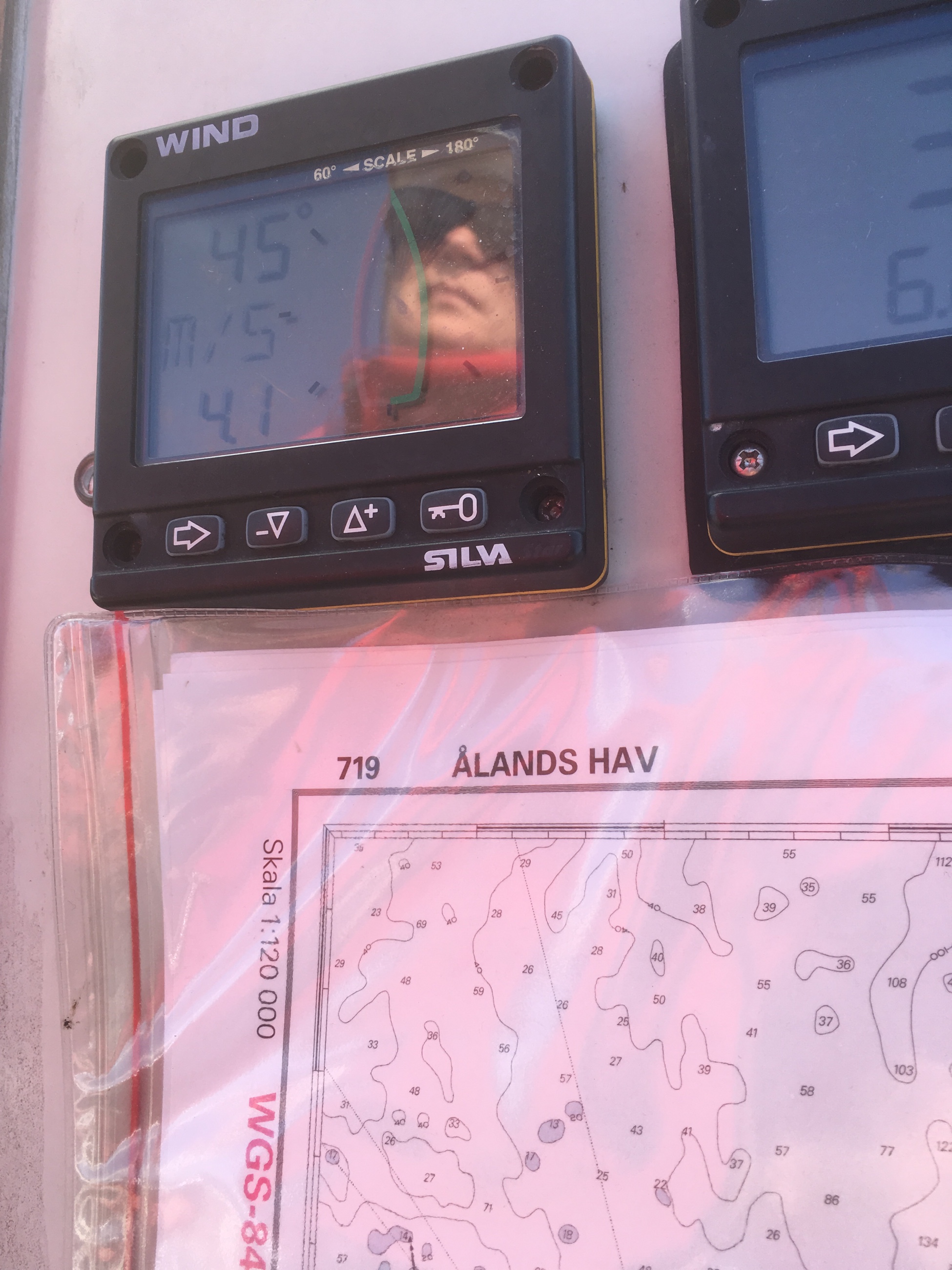 Långa sträckor seglade vi i över 7 knop. Oftast i 6,3-6,8 knop. Vi krängde rätt ordentligt och vågorna växte till sig ju närmare Svenska kusten vi kom. Så det var en lättnad att komma i sjölä för dyningen när vi seglade in bland skären i Sverige.