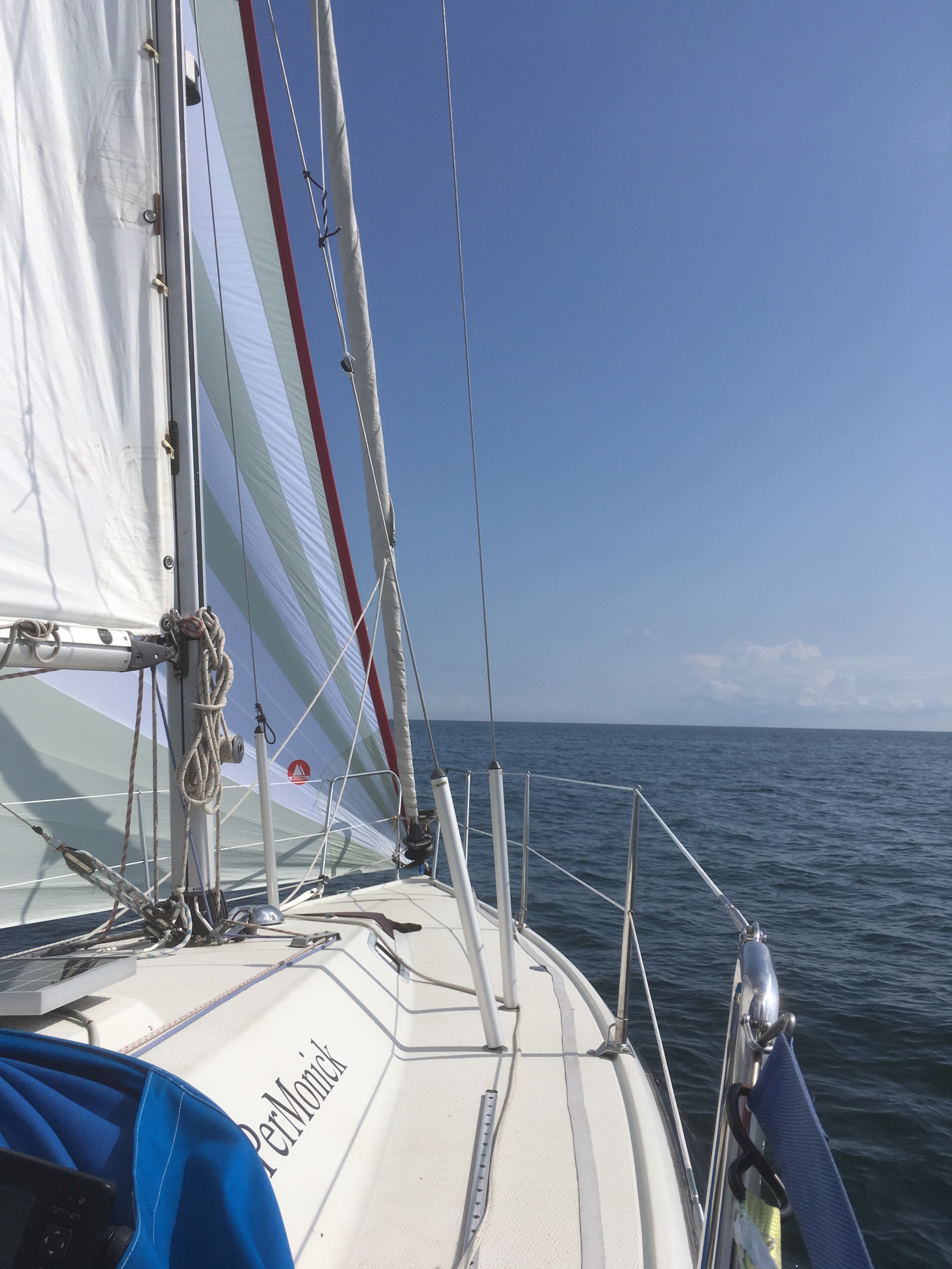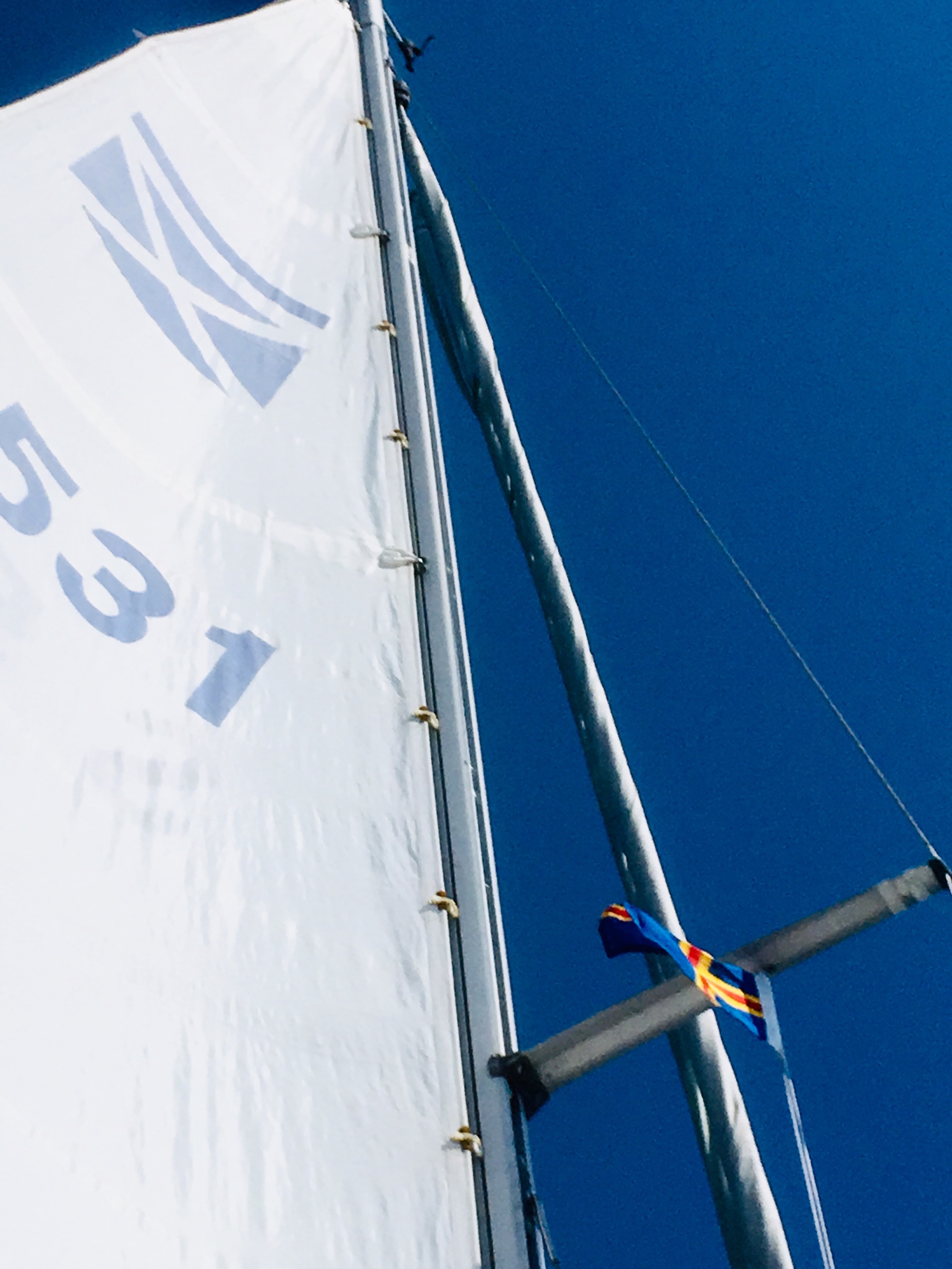 Dagens etapp var på 55 sjömil varav 50 på öppet hav. Vi kunde släppa bojen vid Björn och segla iväg utan att starta motorn.