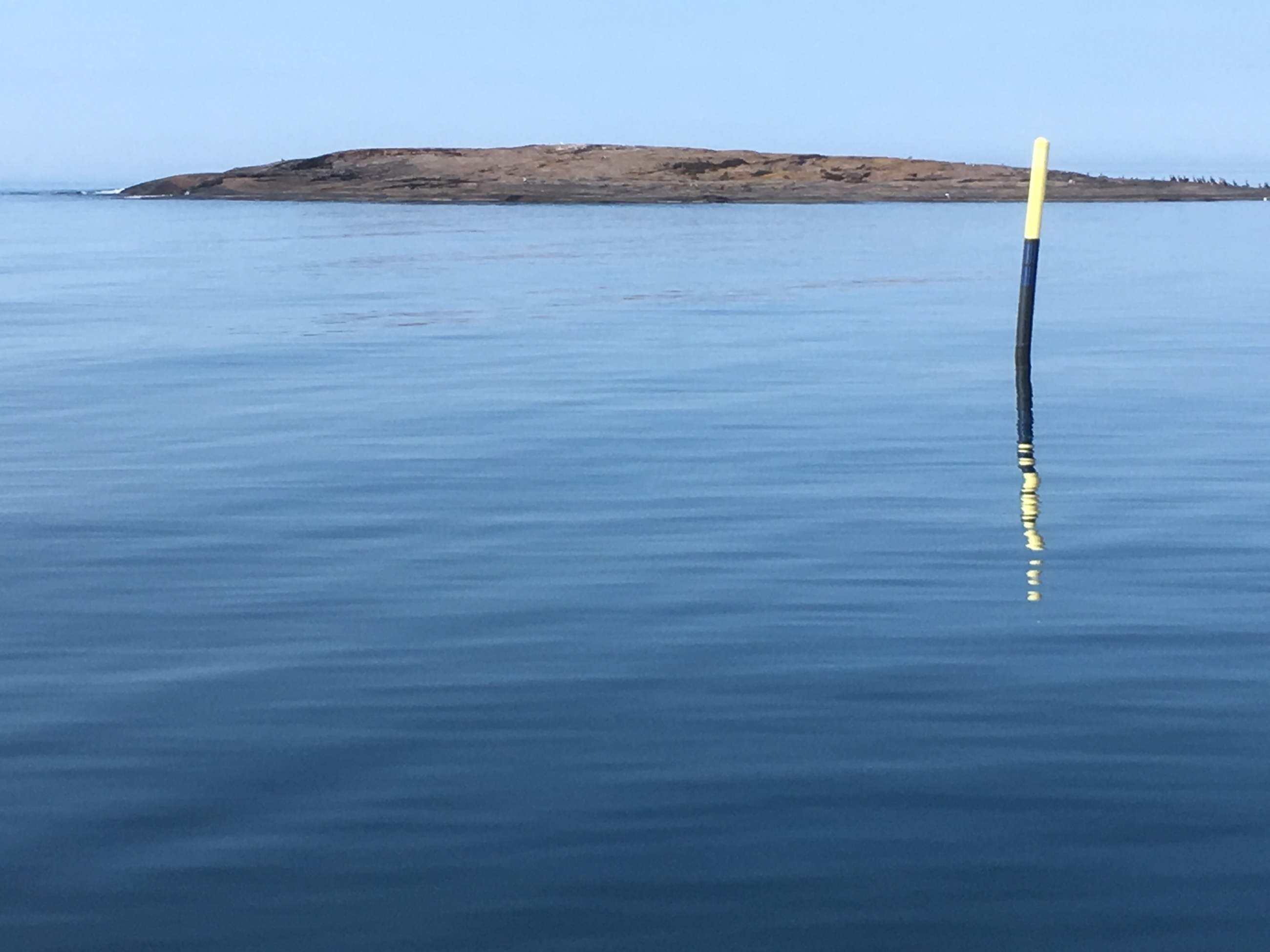Det var ibland svårt att bedöma vilket kardinalmärke man siktade, pga speglingen i vattnet. Detta är ett Sydnärke – inte ett Västmärke!