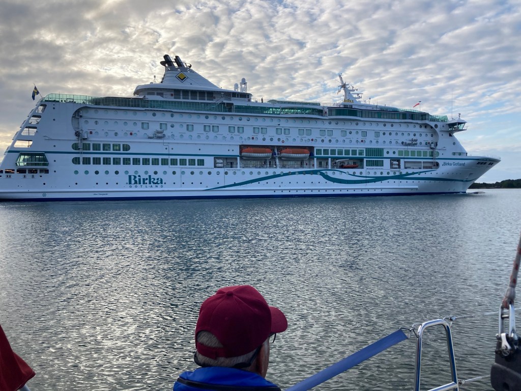 Nästa fartyg varnade Garmin för. Det gick i 15 knop och gick en bra bit väster om 7-knopbåten. Vi var tvungna att gira styrbord för att gå akter om. Vi gick även med lite fladder i seglen för att sänka farten.