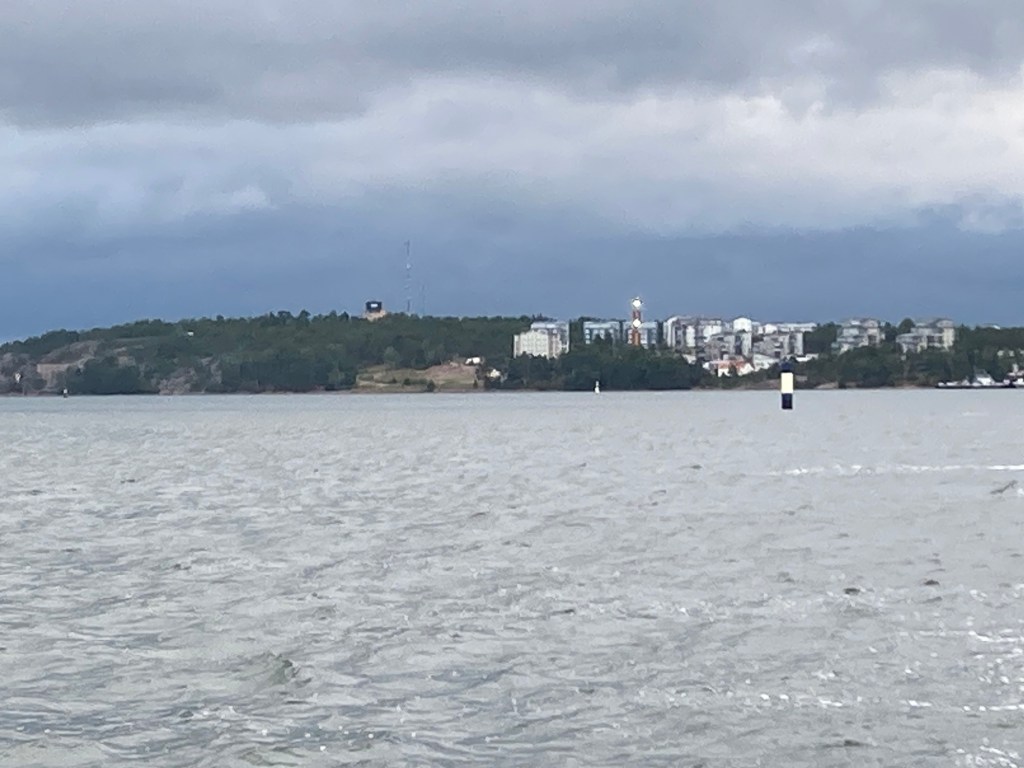 Med 15 sjömil kvar till Märgrunden, som ligger norr om norra Åland, har vi land i sikte.