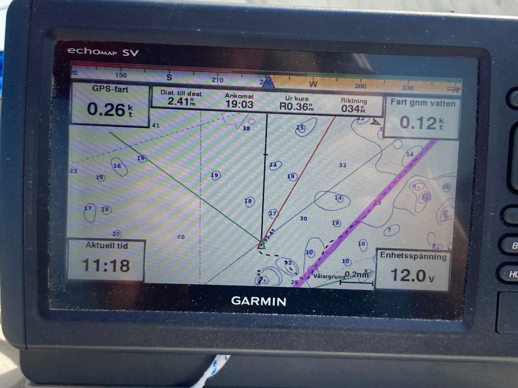I går råkade jag bläddra förbi en menypunkt i plottern där man väljer båttyp. Jag hade valt segelbåt såklart. Jag testade att välja motorbåt. Jag såg ingen skillnad i informationen i plottern men kryssvinkellinjerna försvann!