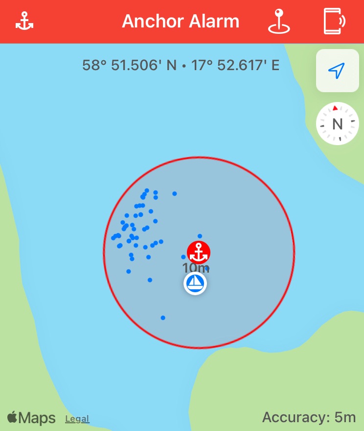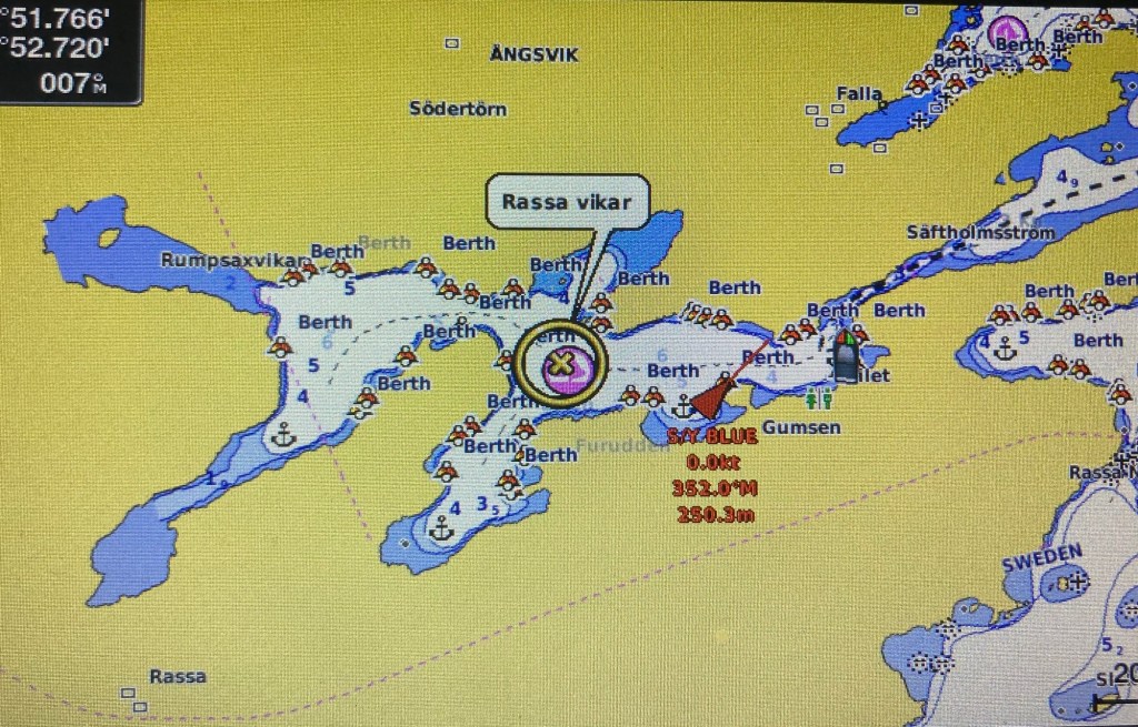 Positionen i sjökortet markerades dessutom av en symbol för motorbåt, men det uppvägdes med råge av att de onödiga kryssvinklarna försvann. Nu har jag dessutom hittat var man väljer båtsymbol, så nu är den detaljen fixad ⛵️