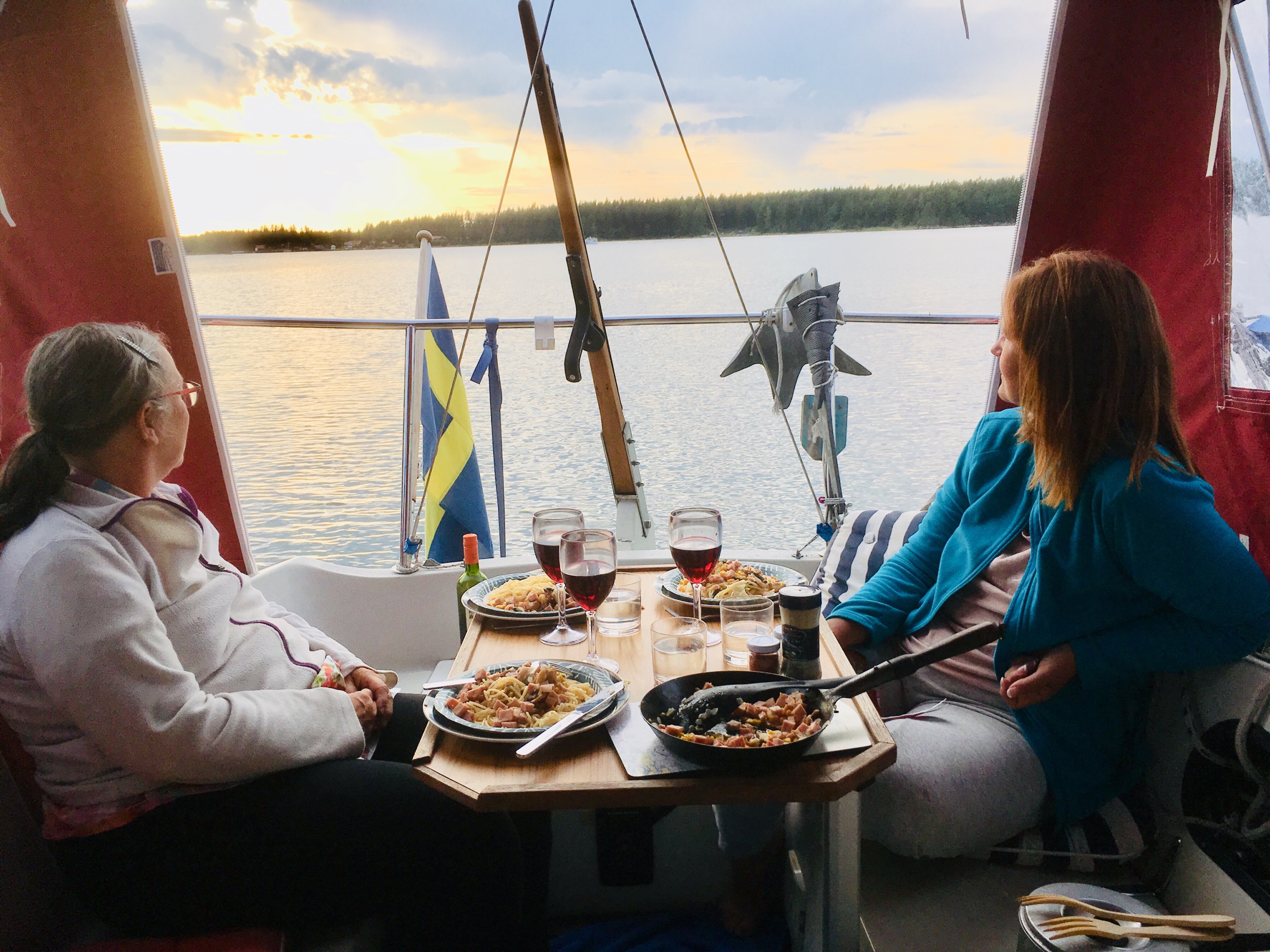 Efter städning blev det middag samtidigt som vi kunde beundra solnedgången.