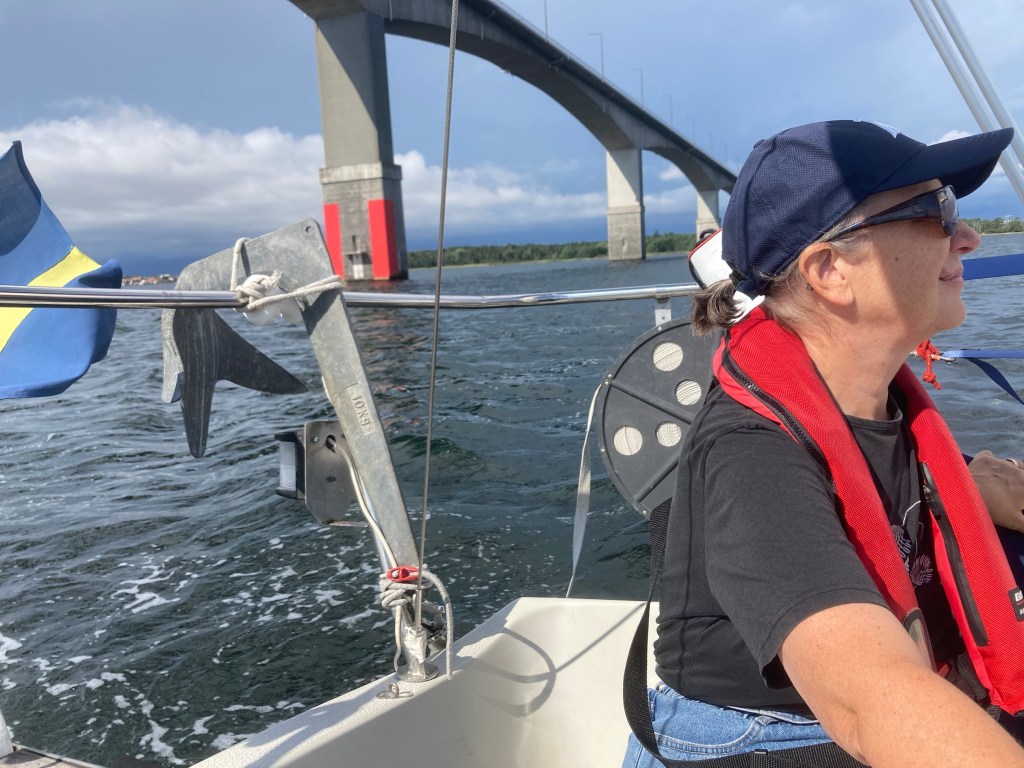 Väl ute i farleden stängde vi av motorn, rullade ut genuan och siktade på Ölandsbron.