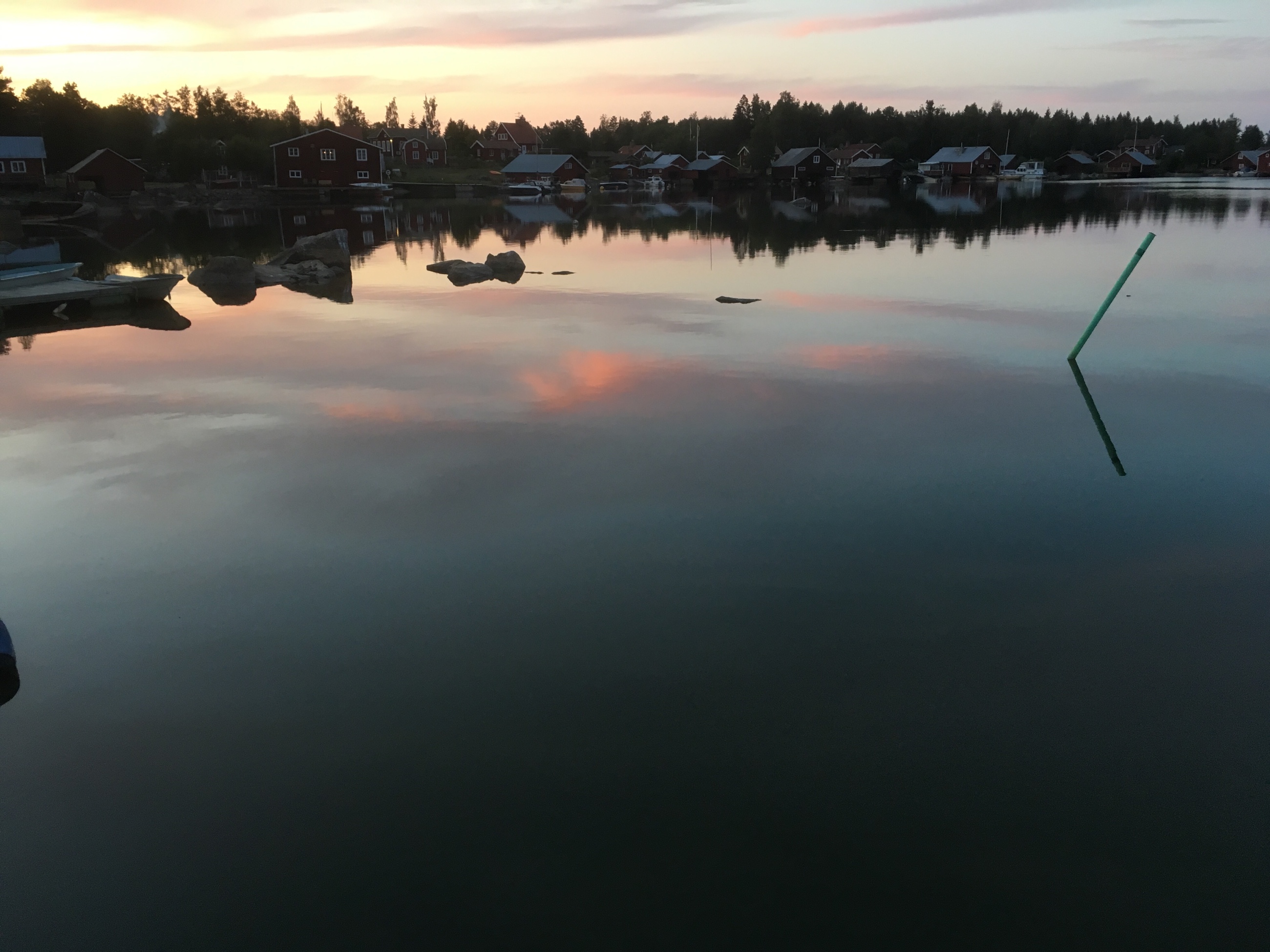 Vi fick återigen en lugn kväll och natt. Vattentemperaturen som i Sundsvall var kring 20 grader har nu ramlat ner till 15. Under natten var det strax över 10 grader i luften. Värmaren fixar dock att det blir en lagom temp inne i båten.