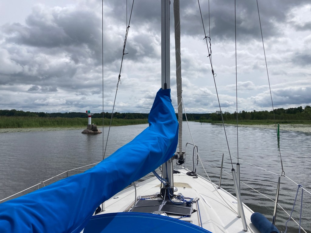 I dag blåste det västligt hela dagen. Och för det mesta 2 m/s. Så det blev motorgång hela vägen.