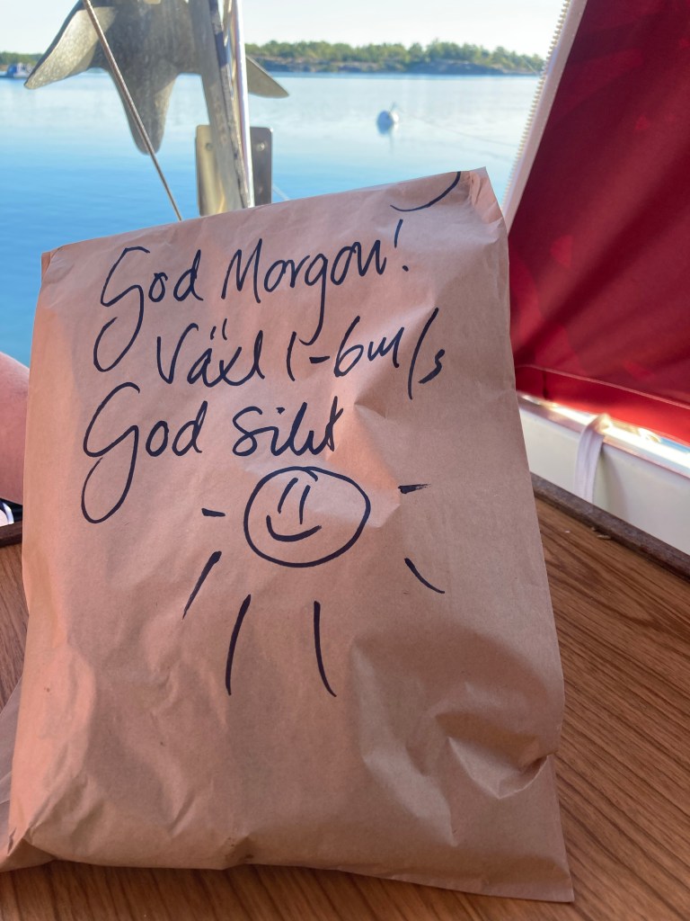 Därefter skepparmöte. Ett par båtar stannar en extra dag här på Fejan. Övriga tre inklusive oss planerar att segla över till Rödhamn i morgon lördag.