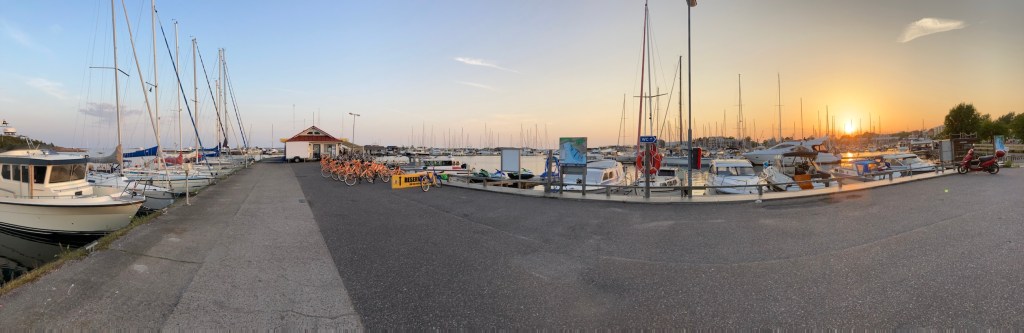 Vi är framme i Hangö norra hamnen. Har promenerat 3 km till sydhamnen för att hitta en restaurang.