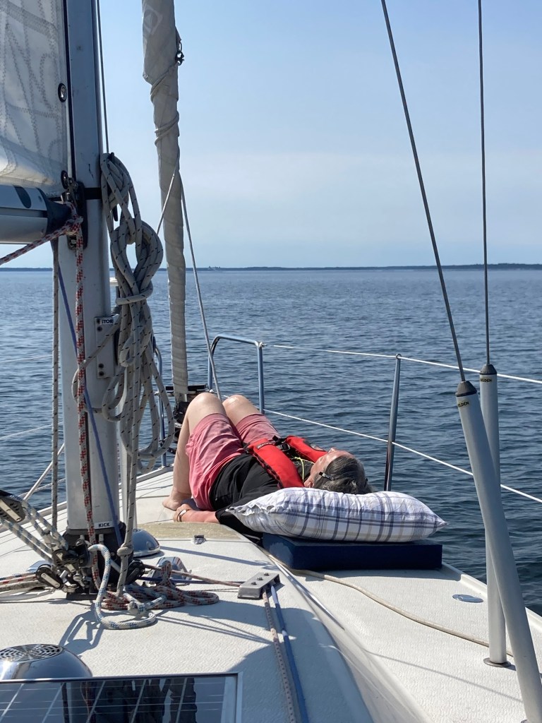 Det var inte många båtar ute. Med 7 sjömil kvar till Läckö dog vinden ut. Dieseln fick jobba i ekonomifart den sista biten. Vi anlände till Läckö slotts brygga kl 15.