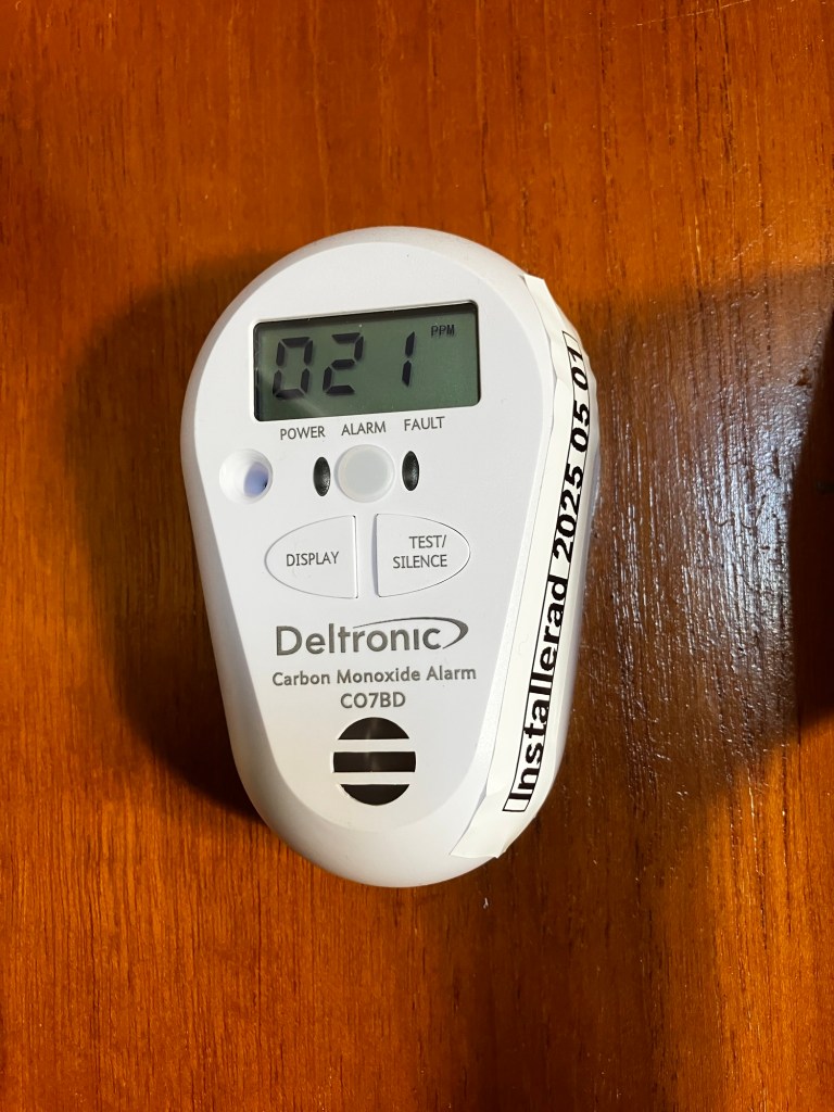 Men det farliga är när vi nattetid kör dieselvärmaren. Då känns det tryggt att vi har avgasvarnaren som håller koll när vi sover.