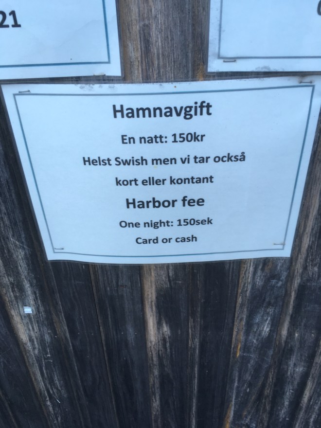 Hamna giften ska betalas via Swish, som synes. Inte så smart av dem att glömma själva Swish-numret… Så nu kan vi använda besparingen till att köpa glass i Sandhamn, som är nästa hållplats!