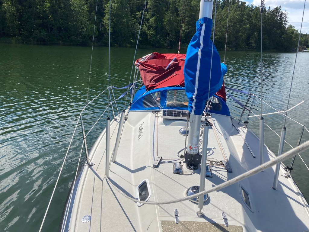 Det fick bli motor ut en bit tills fjärden öppnade sig och vi kunde börja kryssa.