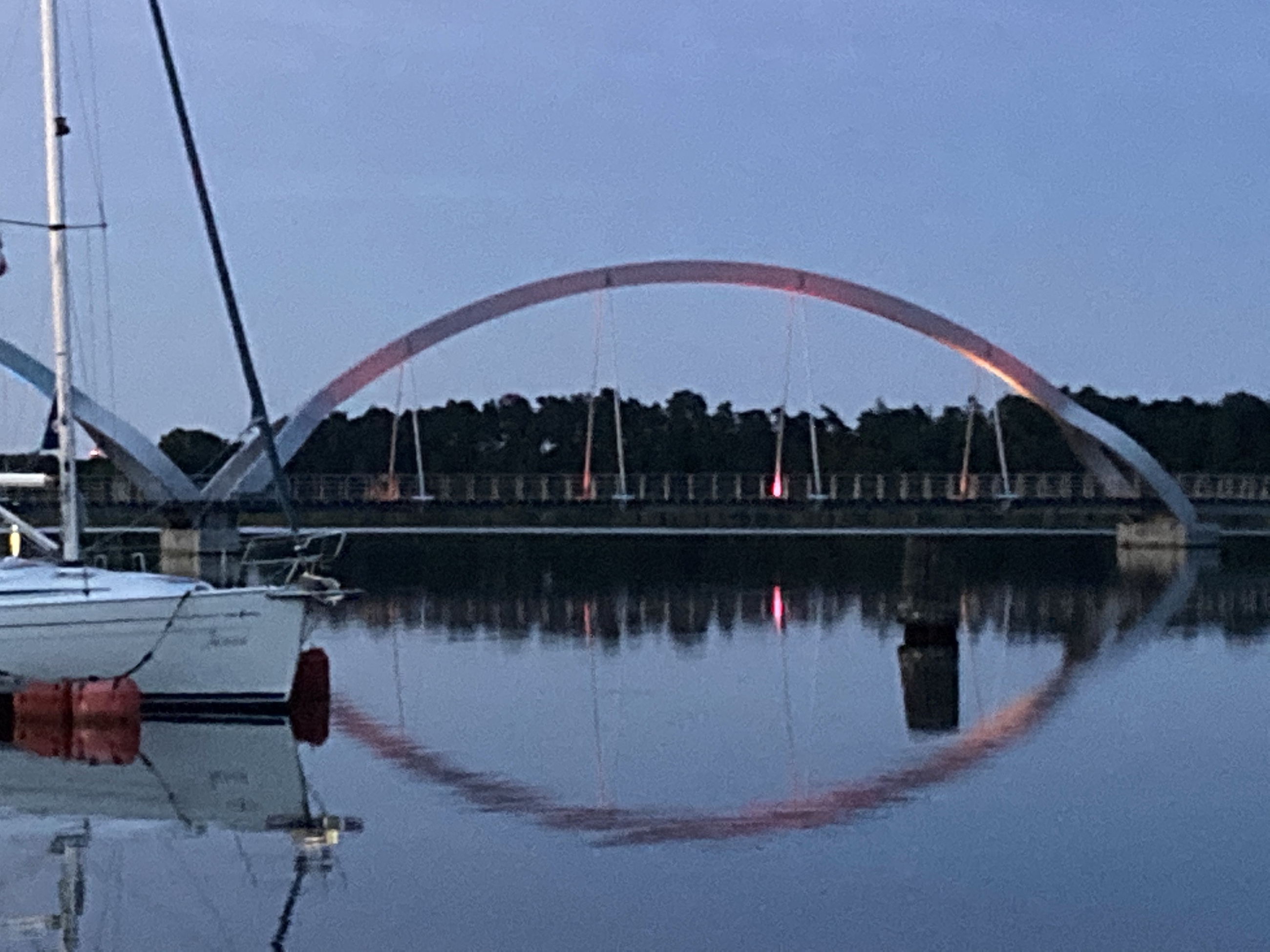Bild 3) Den tjusiga Sölvesborgsbron skiftar i alla regnbågens färger.