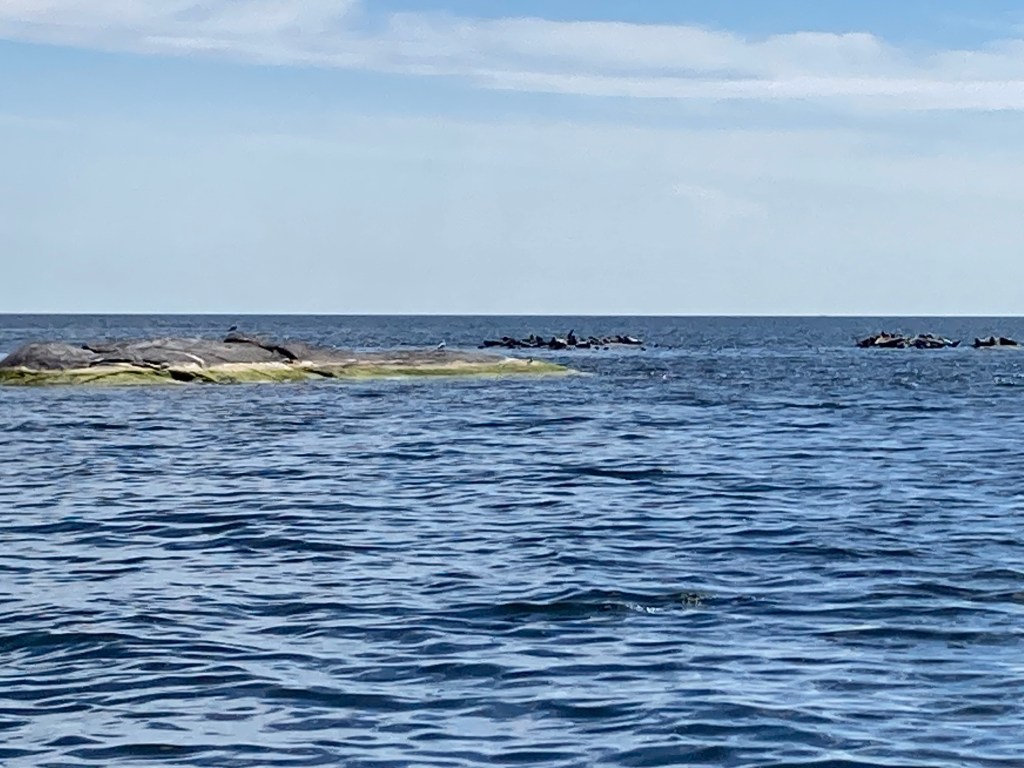 Vi har sett säl även i dag. Det låg ett gäng och vilade där vi seglade ut från Sydkoster. I hamnen i Grebbestad, tre meter från båten, tittade en nyfiken en upp huvudet.