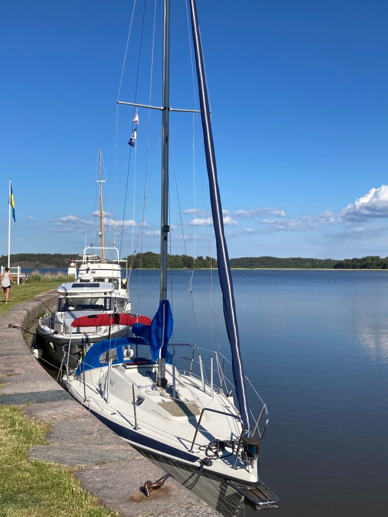 Ett par timmar efter landstigningen vid Grebbestad kom ett rejält oväder med stormbyar, blixt och dunder. Vi låg fint i lä men båten dansade iallafall in i bryggan. Det blev att styvhala bojlinan, så vi kom ut några decimeter från bryggan.