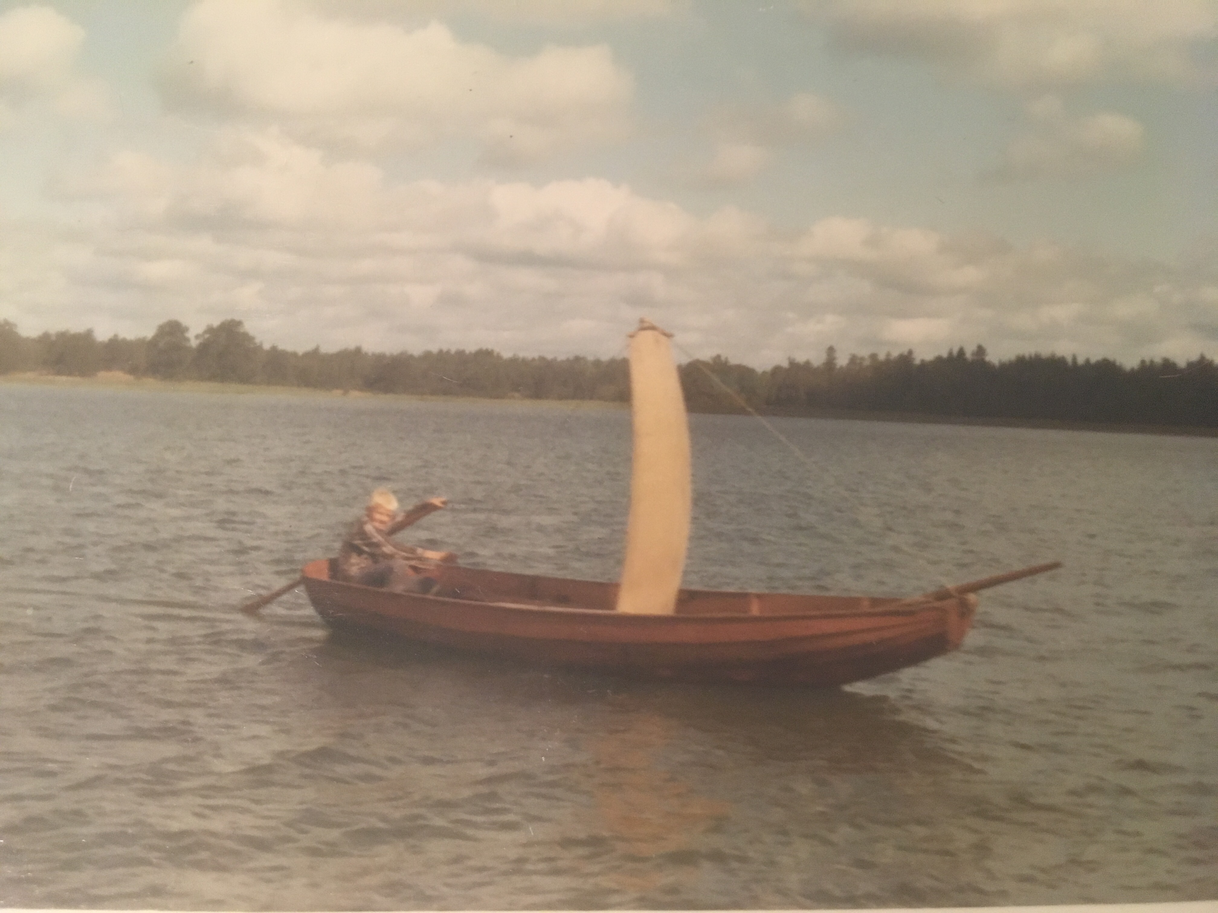 Den använde jag under somrarna 1966 och 1967 (11-12 års ålder alltså). Det gick såklart inte att kryssa med ekan, så jag lärde mig snabbt att ro utan att ”peta ner månen”. Sydlig vind var bäst. Då kunde man fånga små vindilar nedanför berget vid sommarstugan vid Vivesta och åka lite fram och tillbaka. Men snart fångades man upp av vinden och fick segla med vinden över Stjärnholmsviken – och ro 0,5 km tillbaka.