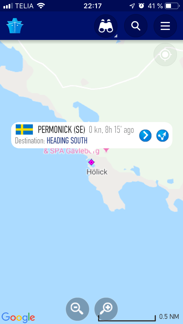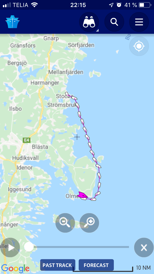 Så här seglade vi i dag. Klicka på en av ”båtarna” så ser du fart och tid. Lägg till två timmar för att se svensk sommartid.